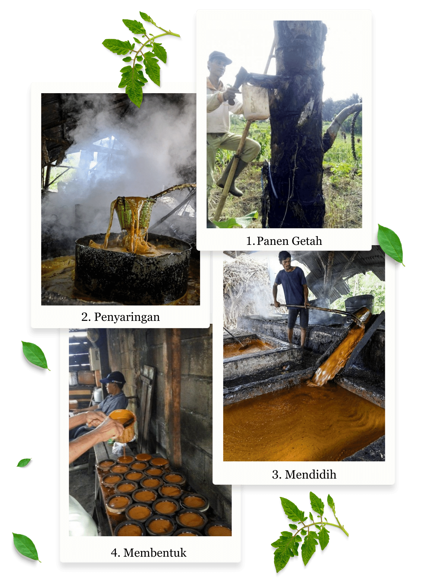 After being filtered, the sap is boiled in a large pan for about 3 – 4 hours to reduce the water content until it becomes very thick/paste at a certain temperature.