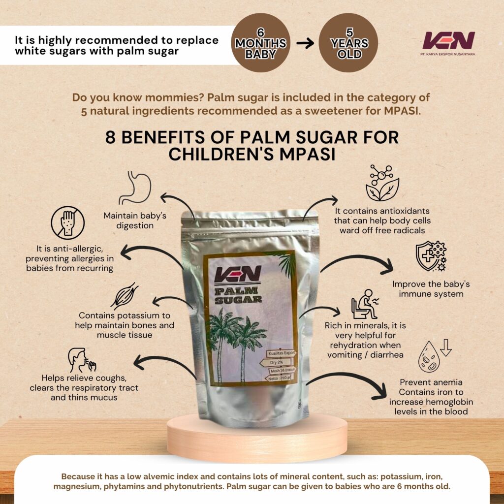 Palm sugar, also known as palm jaggery, is considered beneficial for health due to several reasons: 1. Rich in Vitamins and Minerals: Palm sugar is known to be rich in vitamins and minerals, including B vitamins, inositol, thiamine, riboflavin, folic acid, choline, potassium, nitrogen, phosphorous, iron, and zinc. 2. Antioxidant Properties: Palm sugar contains antioxidants